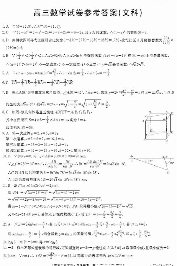 广东省2016年10月百校联考2017届高三数学文科试题答案