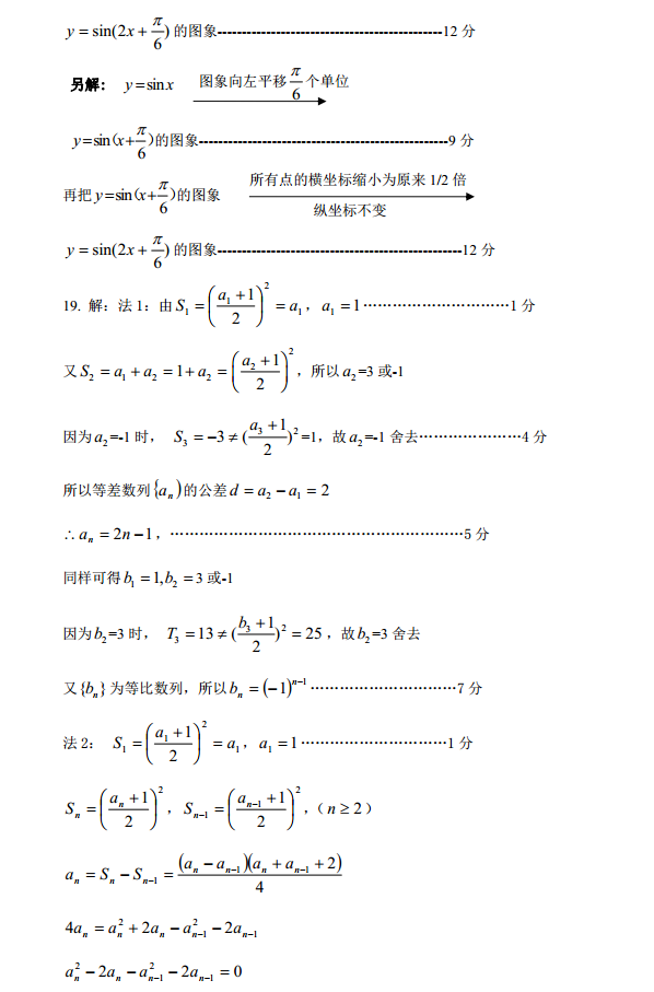 2016年10月河北保定高三摸底考试理科数学试题答案(2)