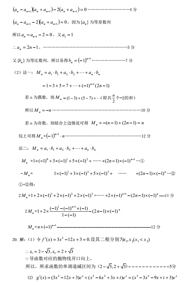 2016年10月河北保定高三摸底考试理科数学试题答案(3)