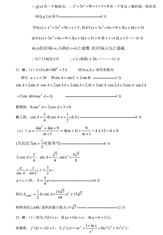 2016年10月河北保定高三摸底考试理科数学试题答案(4)
