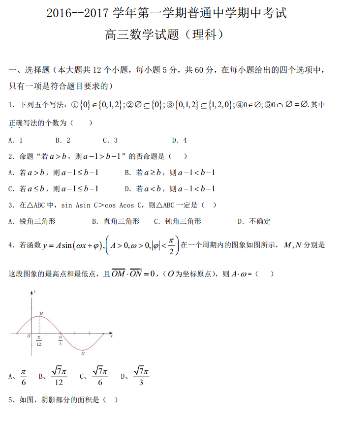 河北承德市2017届高三上学期期中考试数学理科试题及答案