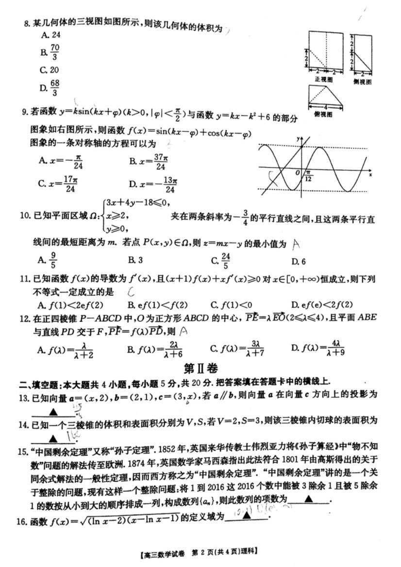 河南河北名校2017届高三第二次省际联考数学理科试题及答案(2)