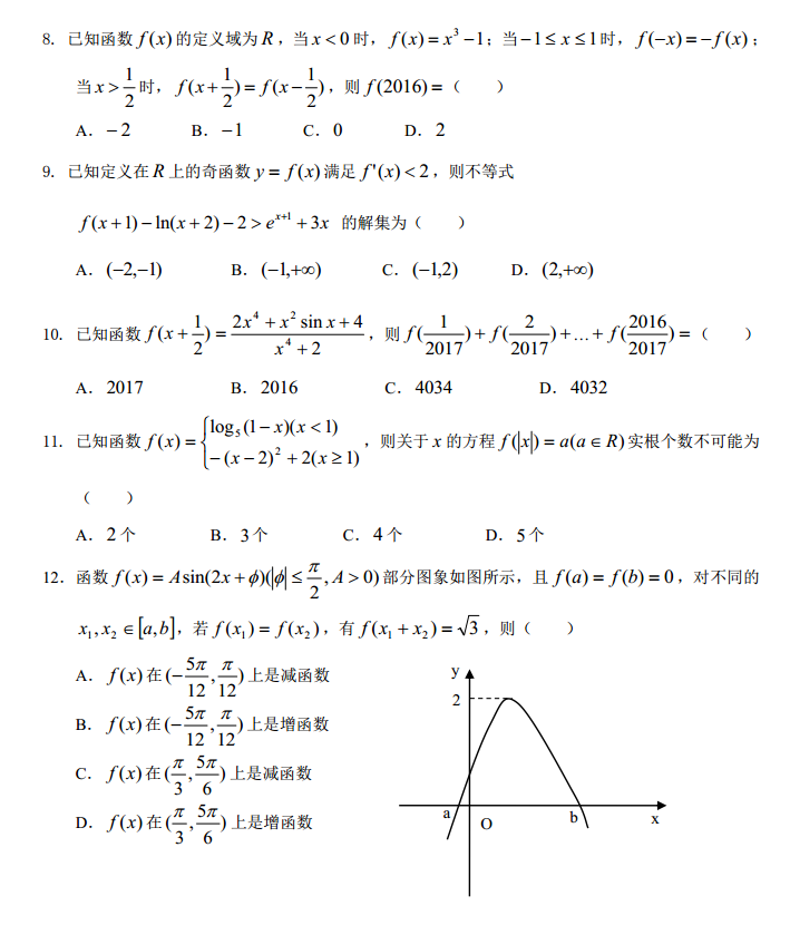 河北定州中学2017届高四上期期中考试数学试题及答案(2)