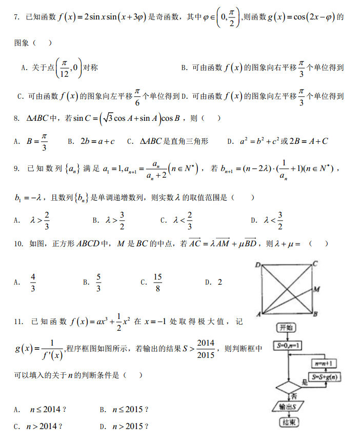 河北定州中学2017届高三上期期中考试数学试题及答案(2)