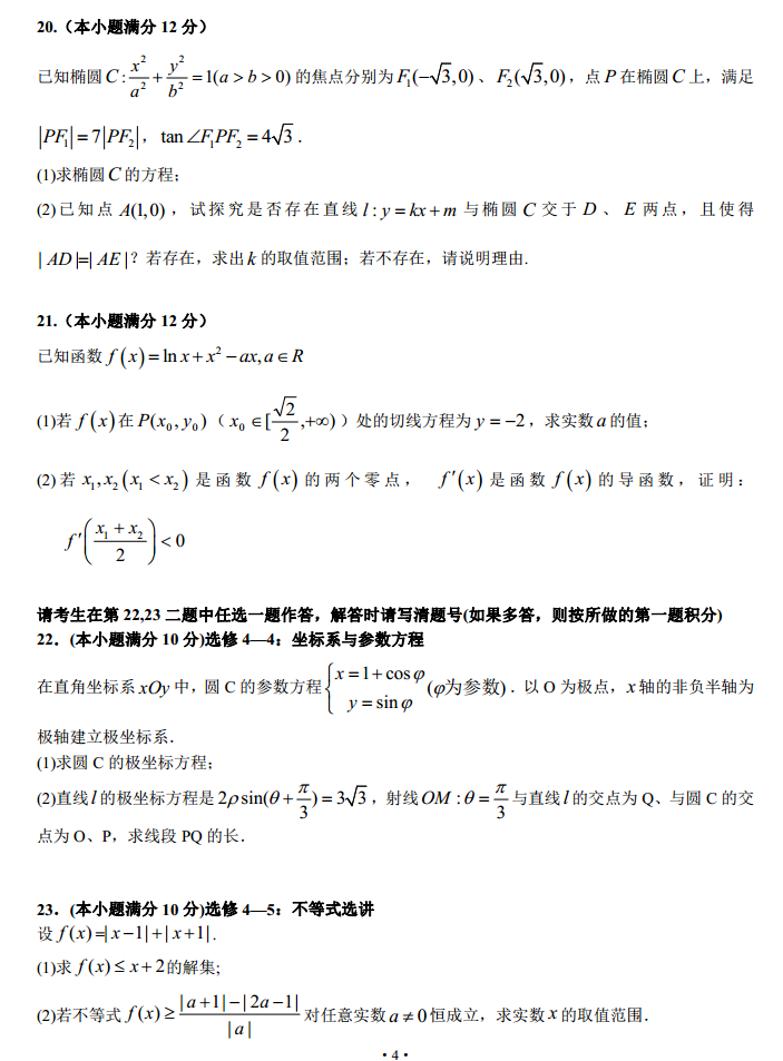 广东揭阳汕一中汕头金山2017届高三上期中联考数学理科试题及答案(4)