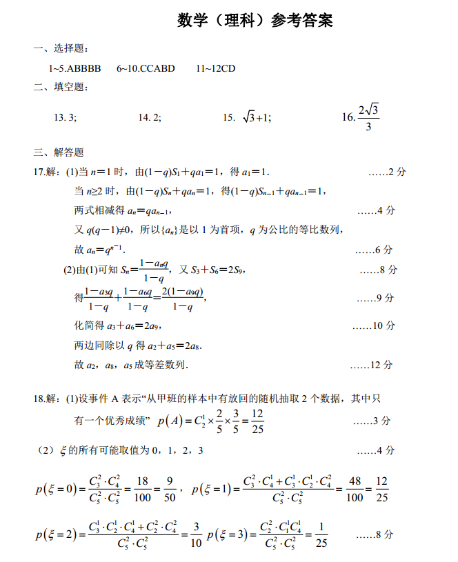 广东揭阳汕一中汕头金山2017届高三上期中联考数学理科试题及答案(5)