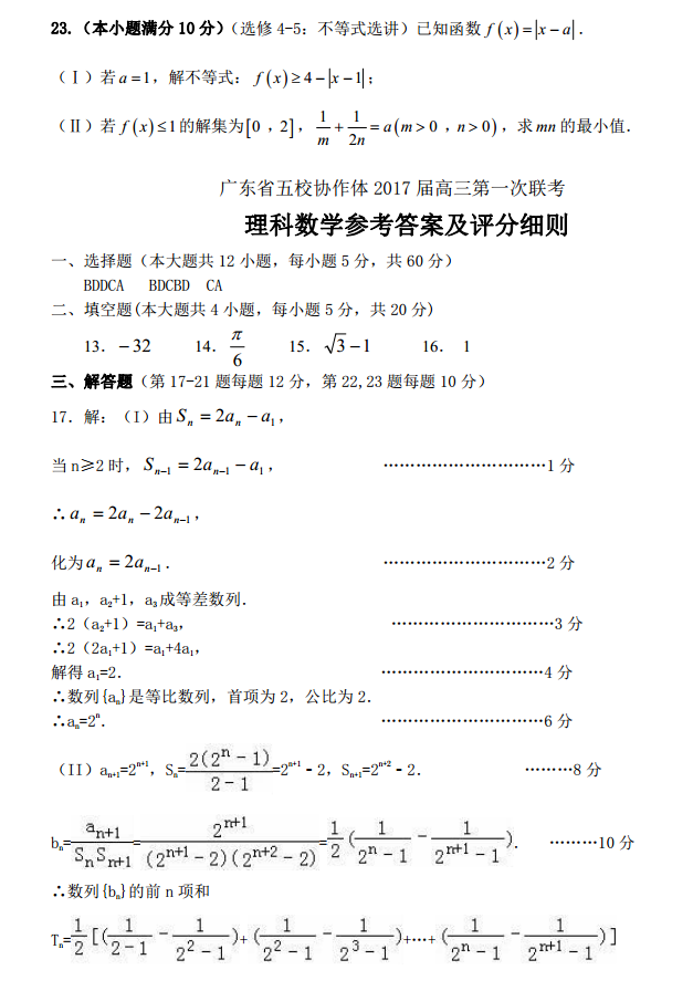 广东五校协作体2017届高三上期第一次联考理科数学试题及答案(5)