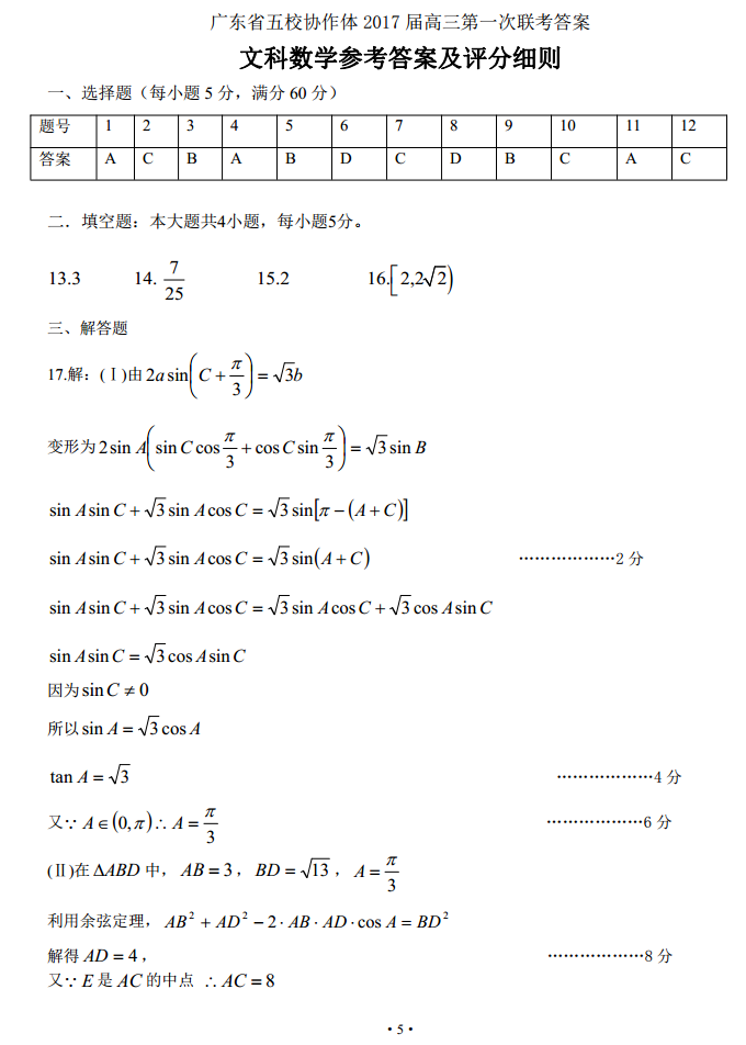 广东五校协作体2017届高三上期第一次联考数学文科试题及答案(5)