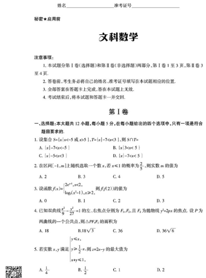 广东省2017届高三12月阶段性测评一数学文科试题及答案