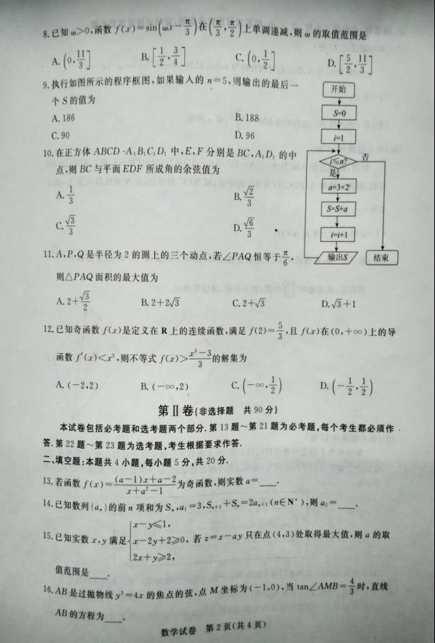 河北沧州2017届高三12月教学质量监测数学理科试题及答案(2)