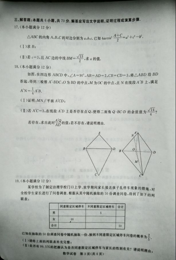 河北沧州2017届高三12月教学质量监测数学理科试题及答案(3)