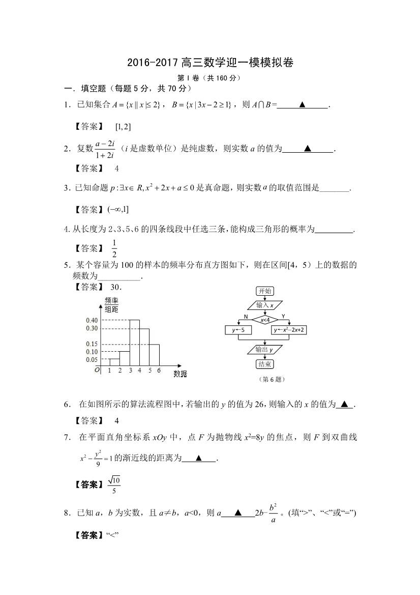 2017江苏南京一模高三数学试题及答案