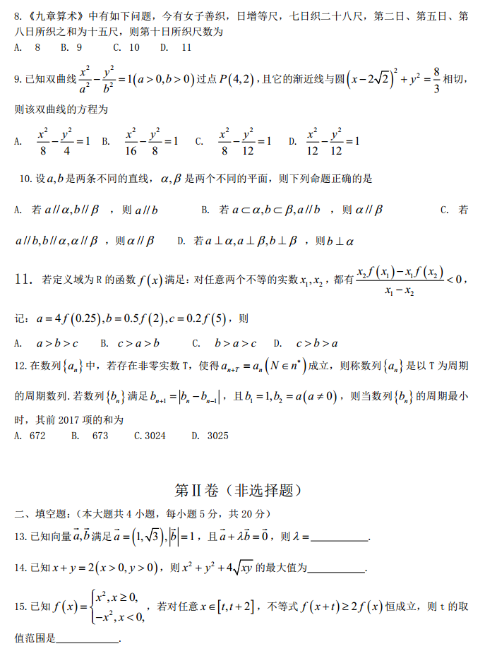 湖北襄阳2017届高三调研统一测试数学文科试题及答案(2)