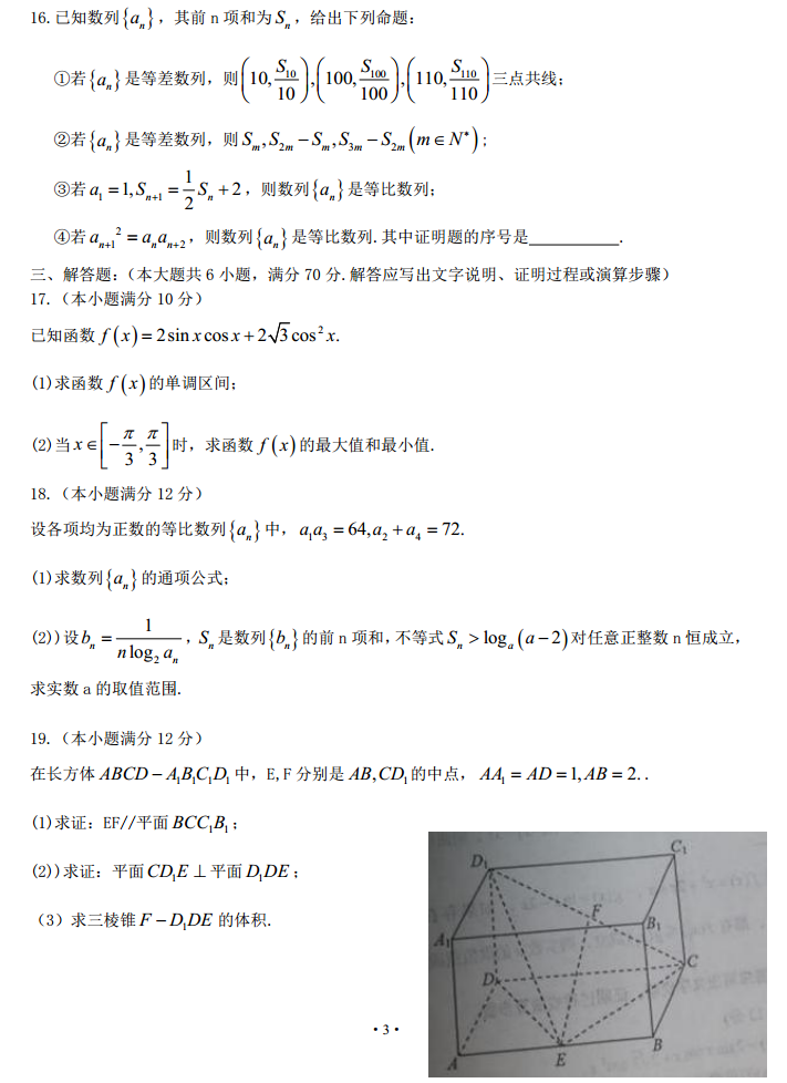 湖北襄阳2017届高三调研统一测试数学文科试题及答案(3)