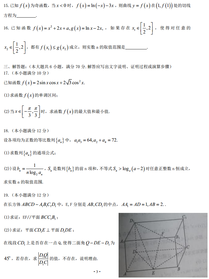 湖北襄阳2017届高三第一次调研数学理科试题及答案(3)