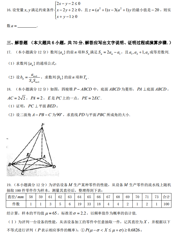 广东汕头2017届高三上学期期末质量监测数学理科试题及答案(4)