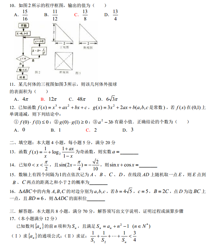 广东汕头2017届高三上学期期末质量监测数学文科试题及答案(2)