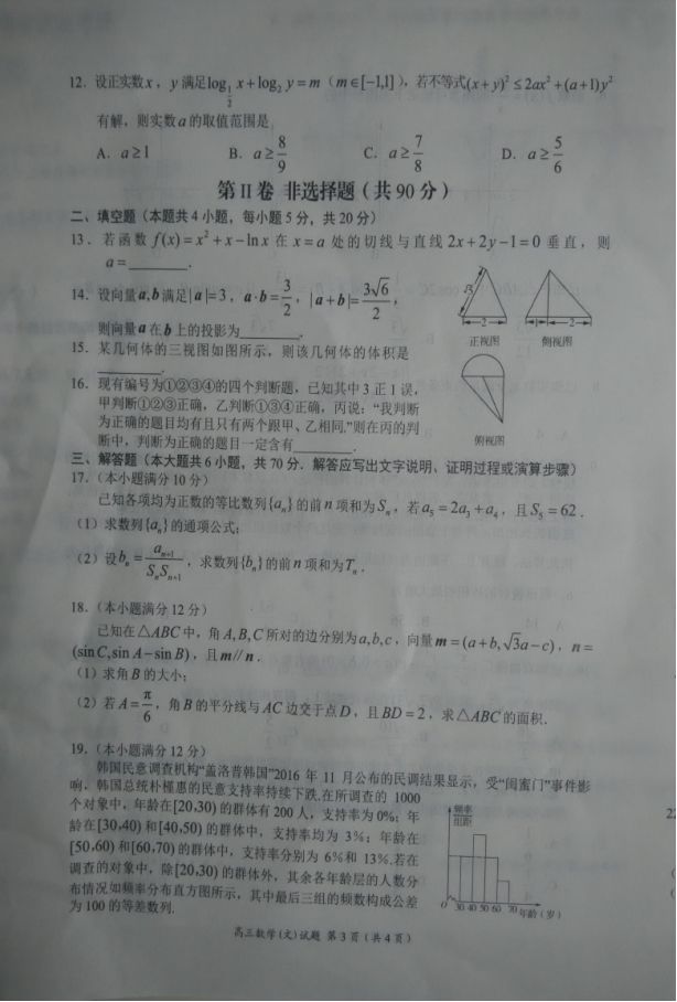 豫南九校2016-2017学年上期期末质量考评高三数学文科试题及答案(3)