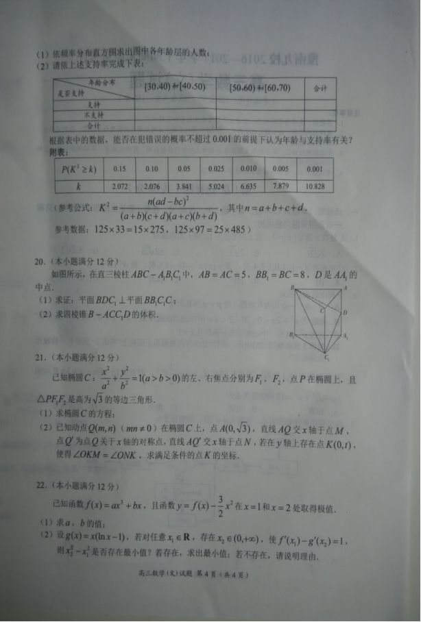豫南九校2016-2017学年上期期末质量考评高三数学文科试题及答案(4)