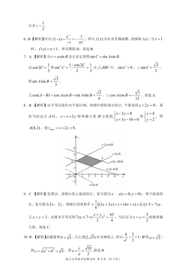 豫南九校2016-2017学年上期期末质量考评高三数学文科试题及答案(6)
