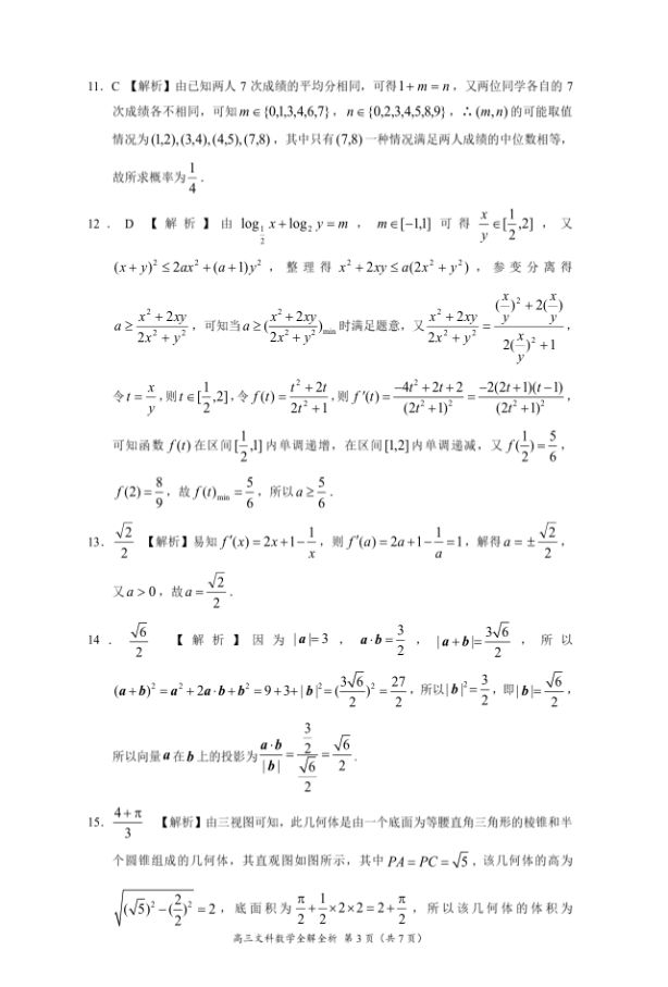 豫南九校2016-2017学年上期期末质量考评高三数学文科试题及答案(7)