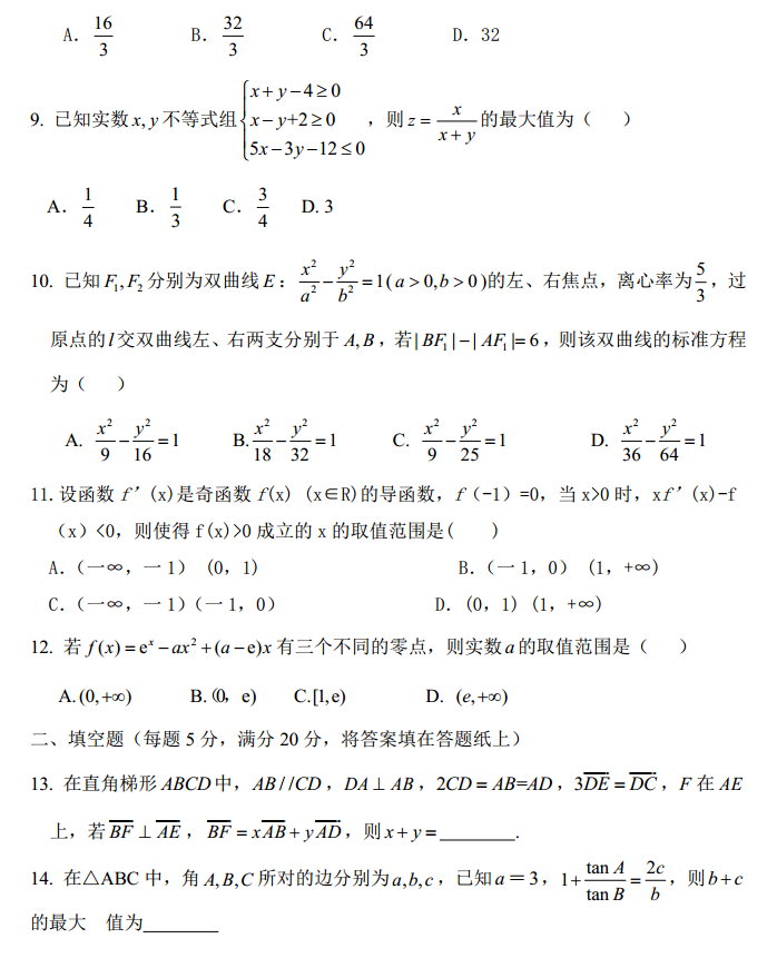 河北徐水2016—2017学年高三第一学期月考二数学理科试题及答案(2)
