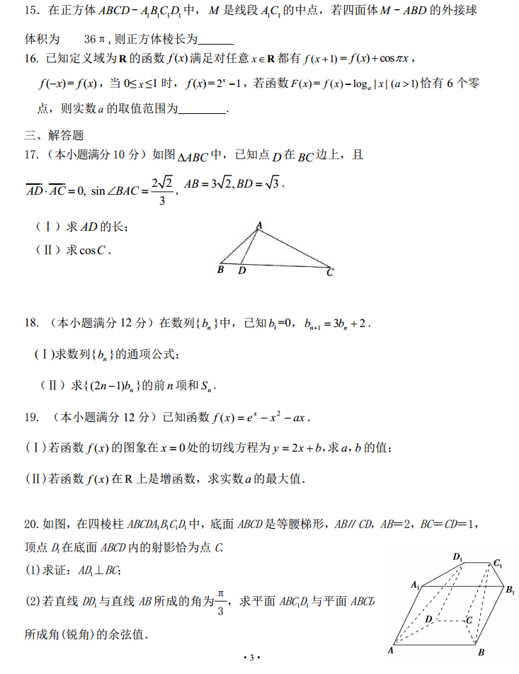 河北徐水2016—2017学年高三第一学期月考二数学理科试题及答案(3)