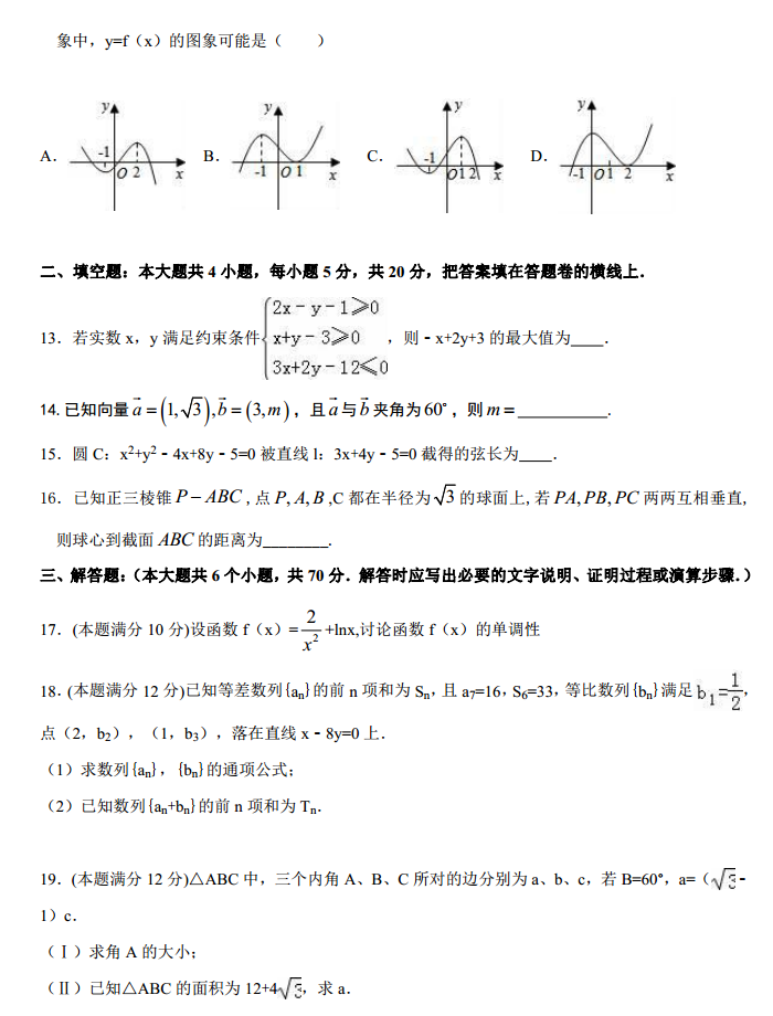 河北徐水2016—2017学年高三第一学期月考二数学文科试题及答案(3)
