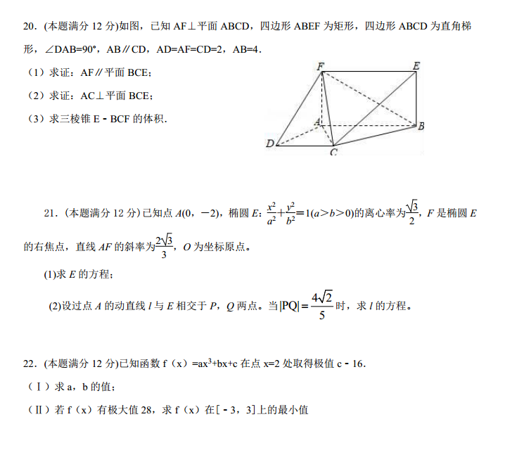 河北徐水2016—2017学年高三第一学期月考二数学文科试题及答案(4)