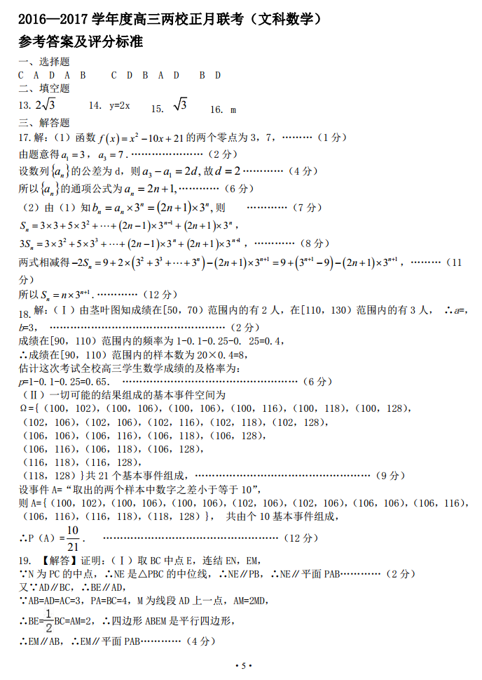 广东揭阳一中2016-2017学年高三正月联考数学文科试题及答案(5)