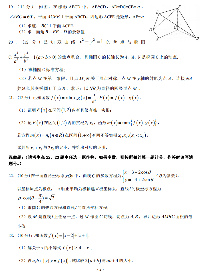 广东揭阳一中2016-2017学年高三正月联考数学理科试题及答案(4)