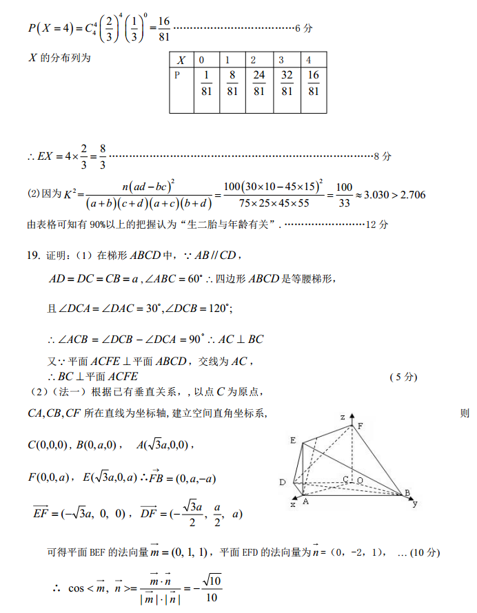 广东揭阳一中2016-2017学年高三正月联考数学理科试题及答案(6)