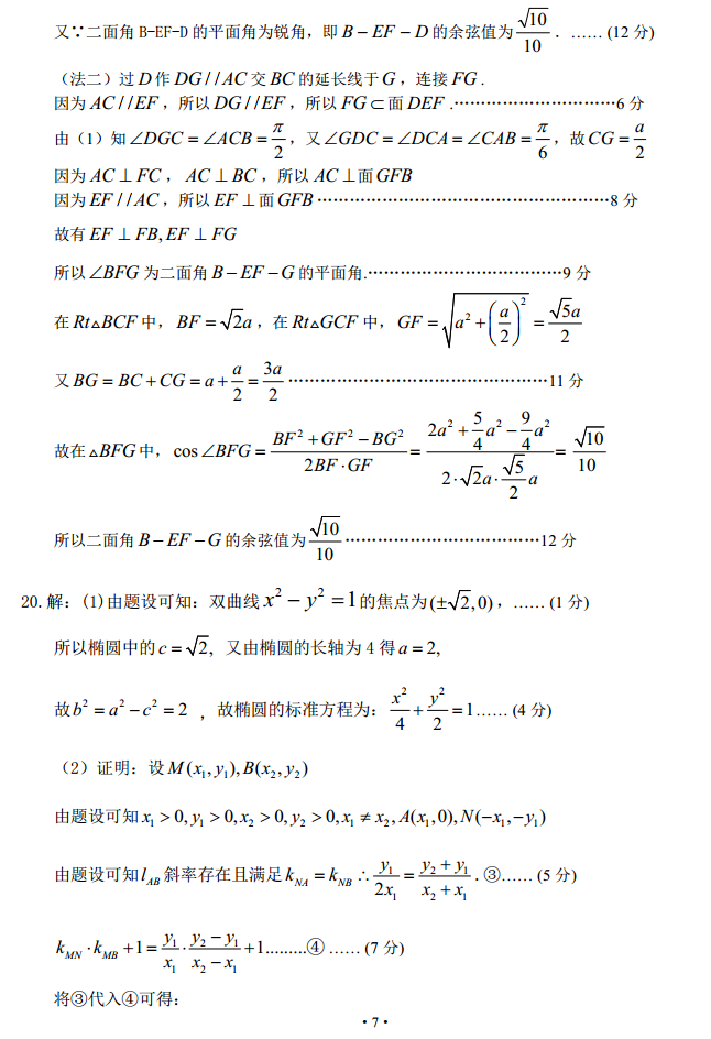 广东揭阳一中2016-2017学年高三正月联考数学理科试题及答案(7)