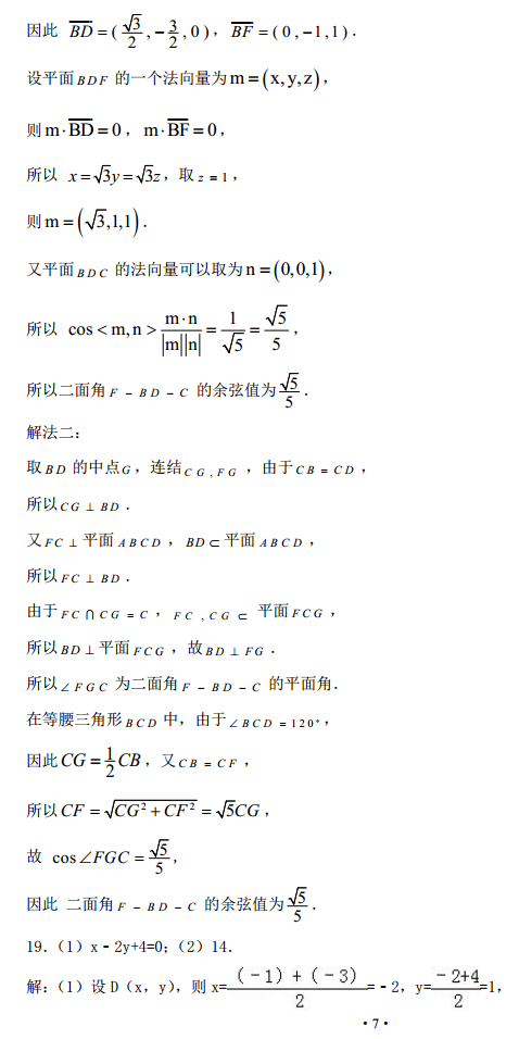 河北八所重点中学2017届高三第二学期第一次联考数学试题及答案(7)