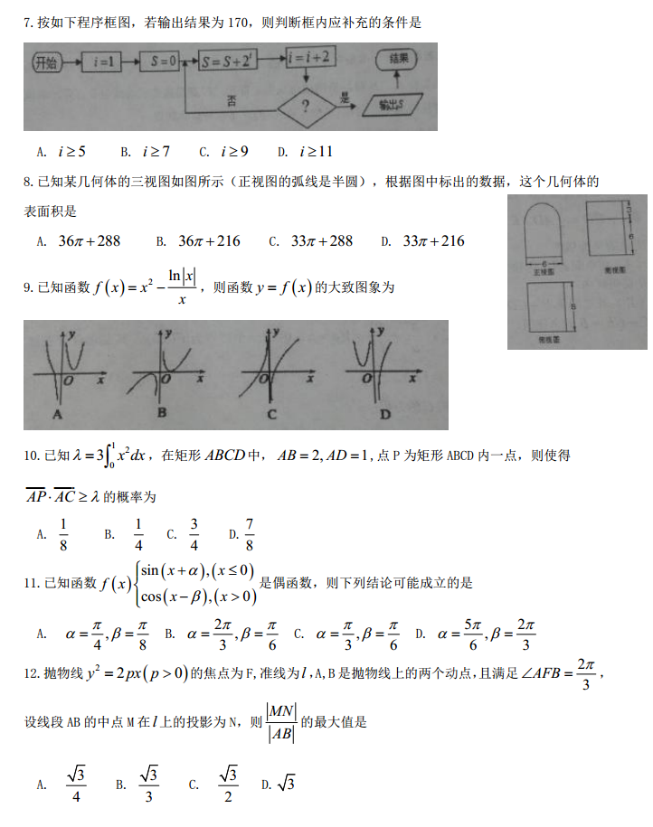 湖北襄阳优质高中2017届高三1月联考数学理科试题及答案(2)