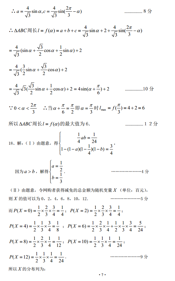 湖北襄阳优质高中2017届高三1月联考数学理科试题及答案(7)