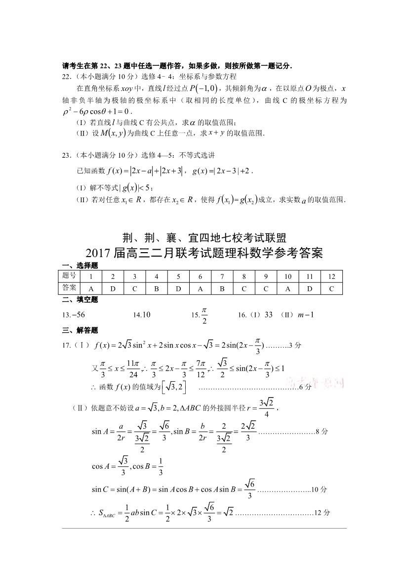 荆荆襄宜四地七校联盟2017届高三2月联考数学理科试题及答案(5)