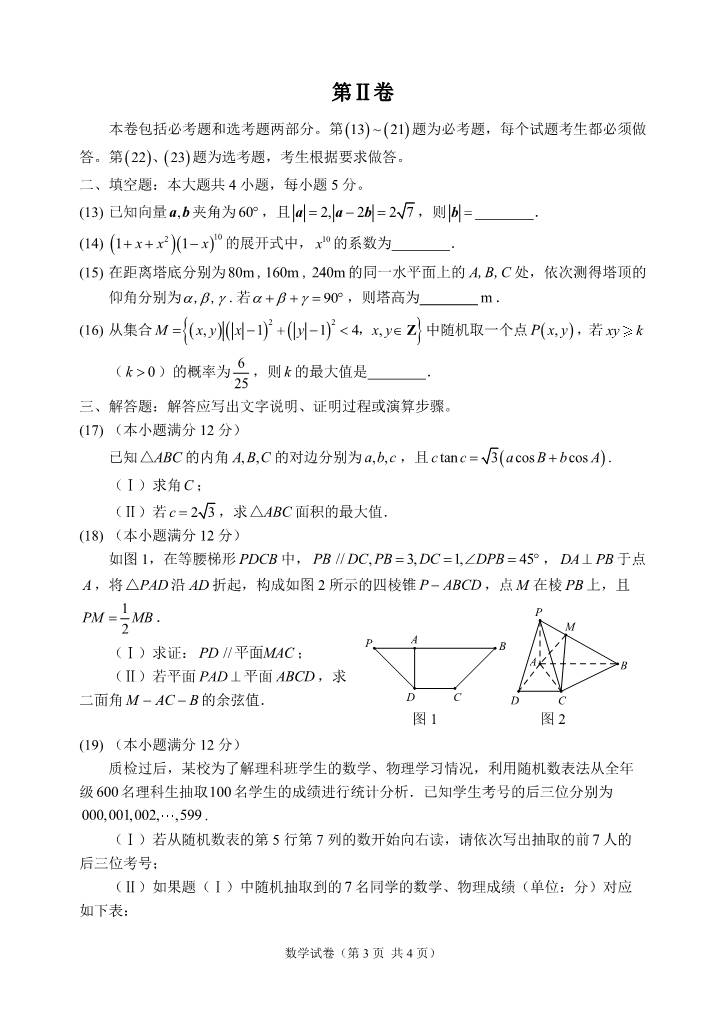 2017福州高三质检数学 福州高三毕业班质量检测数学理科试题及答(3)