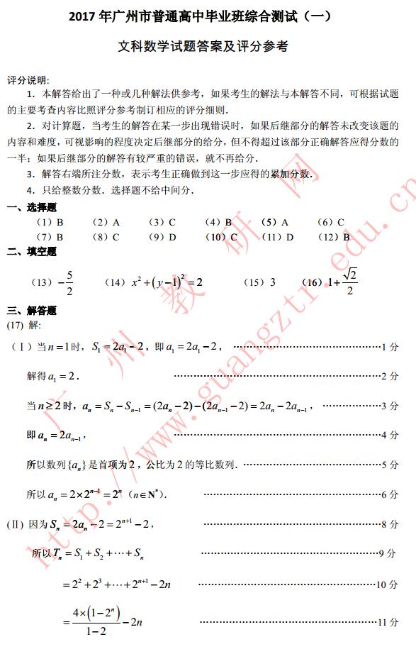 2017年广州一模数学试题及答案 2017广州高三一模数学文科答案(5)