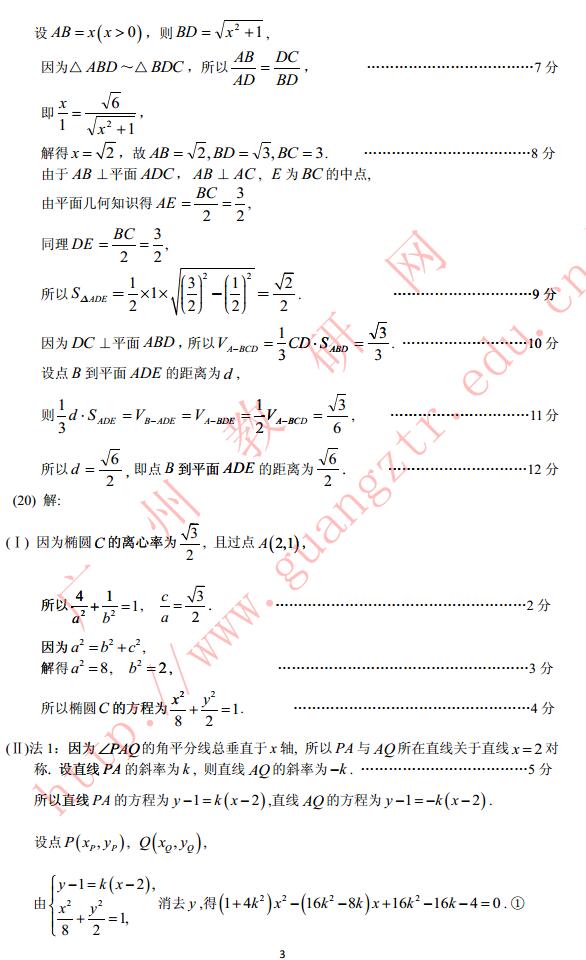 2017年广州一模数学试题及答案 2017广州高三一模数学文科答案(7)
