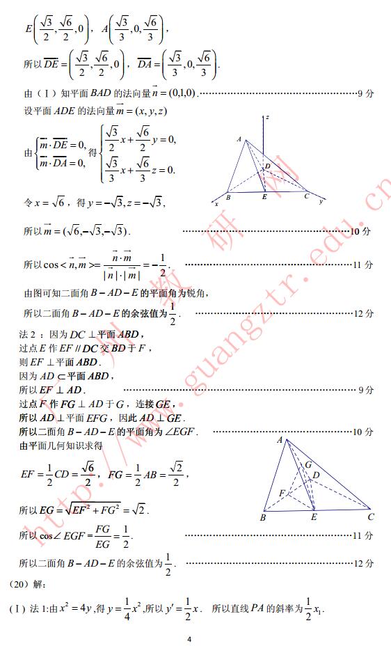 2017年广州一模数学试题及答案 2017广州高三一模数学理科答案(4)