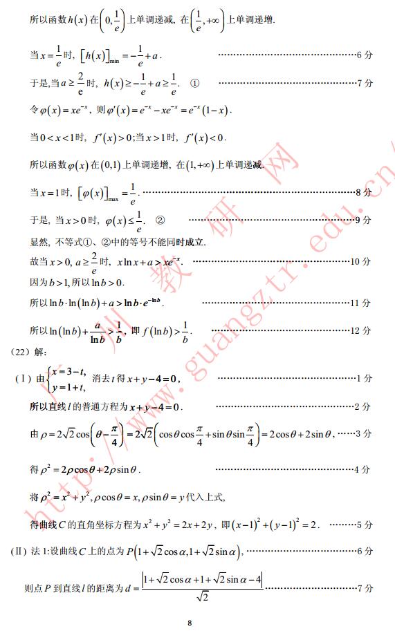 2017年广州一模数学试题及答案 2017广州高三一模数学理科答案(8)