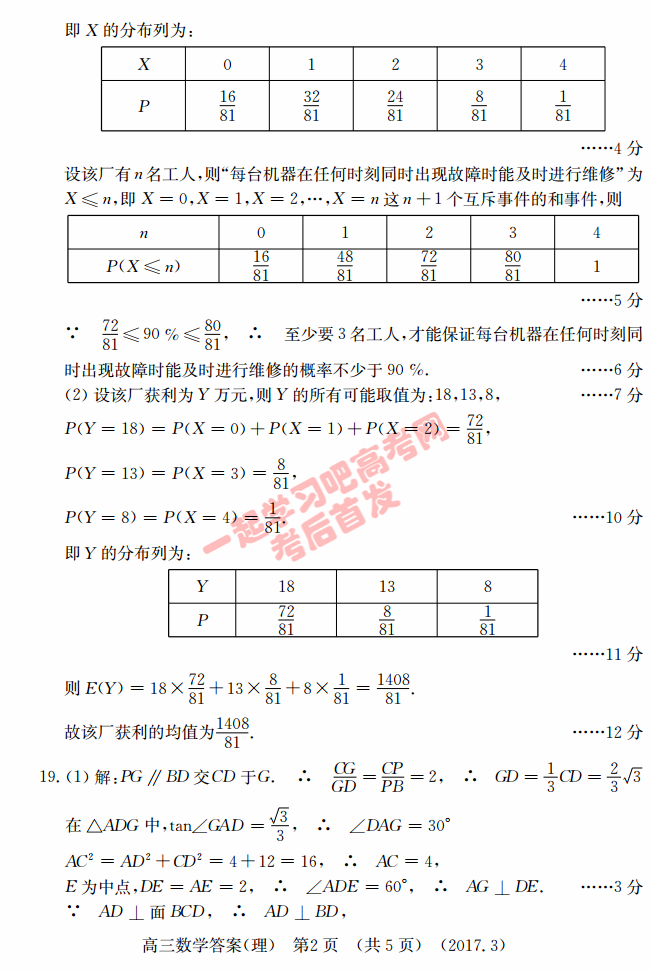 2017年洛阳二练数学答案 2017洛阳二练数学理科试题及答案(2)