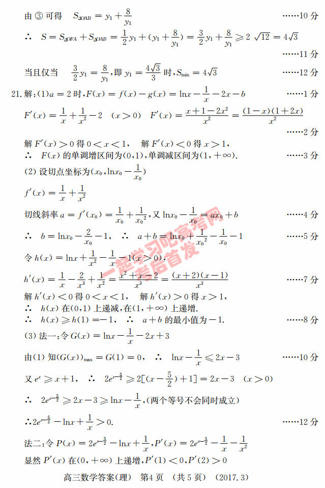 2017年洛阳二练数学答案 2017洛阳二练数学理科试题及答案(4)