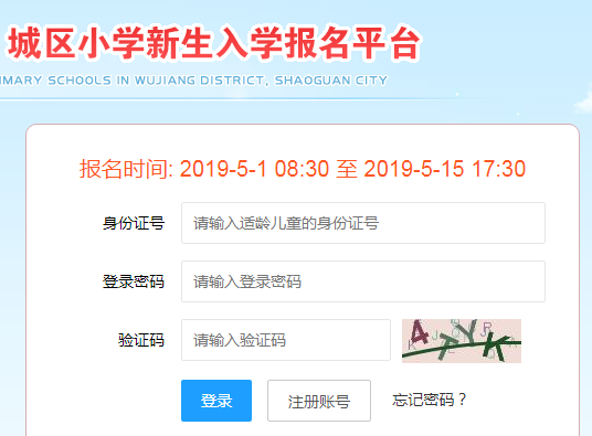 http://rxbm.sgwjq.gov.cn/login韶关武江区城区小学新生入学报名平台