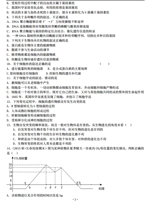 2016湖北枣庄第七中学高三下学期中考理综生物试题及答案(2)