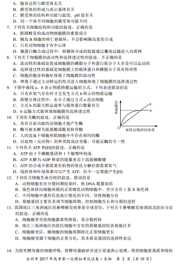 湖南省永州市2017届高三第一次模拟考试生物试题及答案(2)