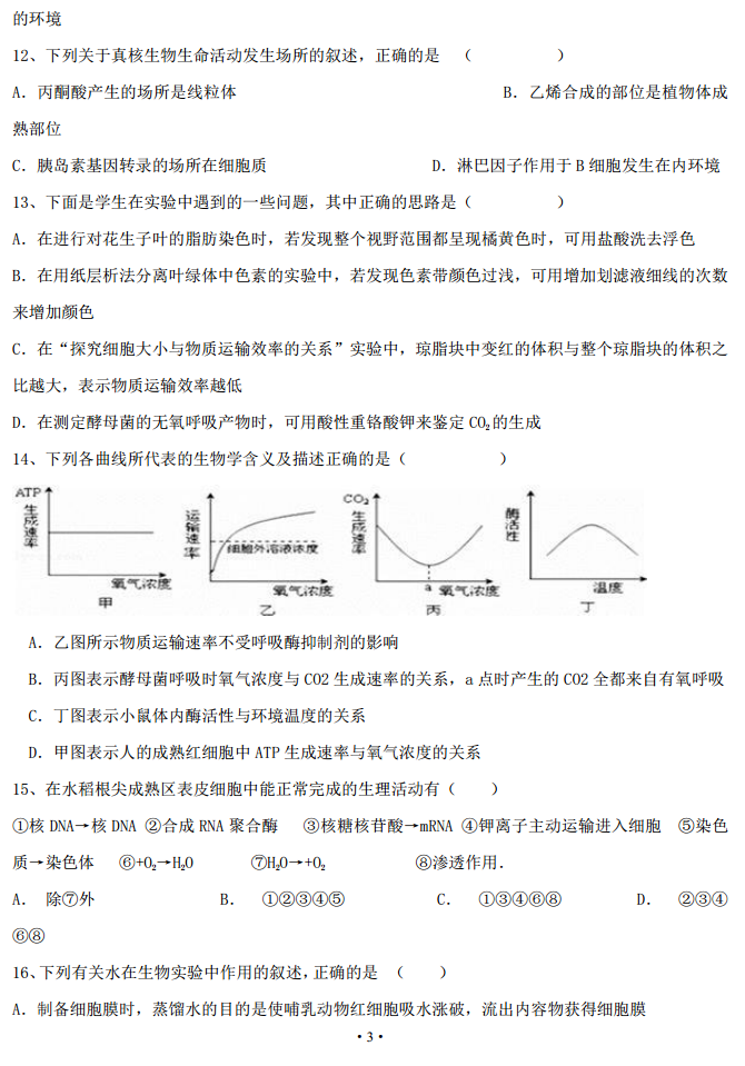 山西省三区八校2017届高三暑假末结业考试生物试题及答案(3)