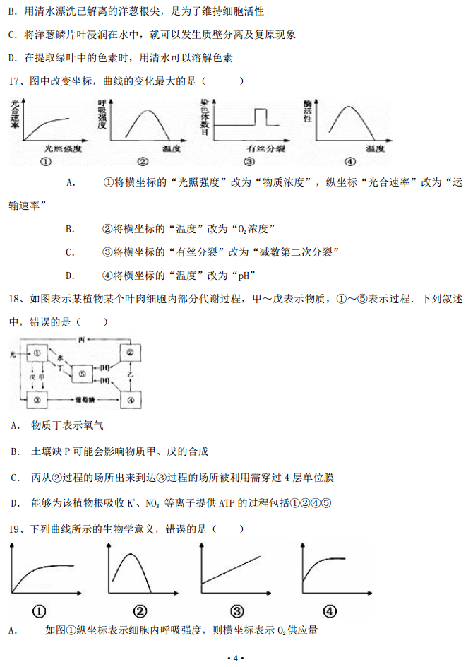 山西省三区八校2017届高三暑假末结业考试生物试题及答案(4)