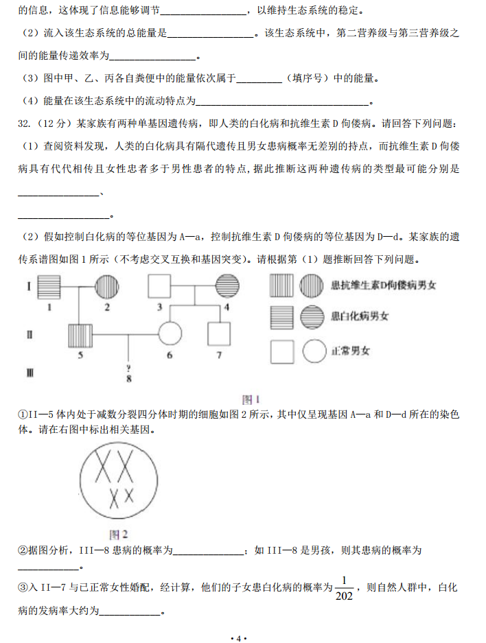 湖南长沙长郡中学2017届高三入学考试理综生物试题及答案(4)